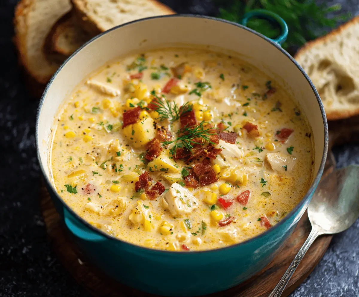 This Chicken Corn Chowder is warm, creamy, and filled with sweet corn and tender chicken pieces. It’s like a cozy hug in a bowl!