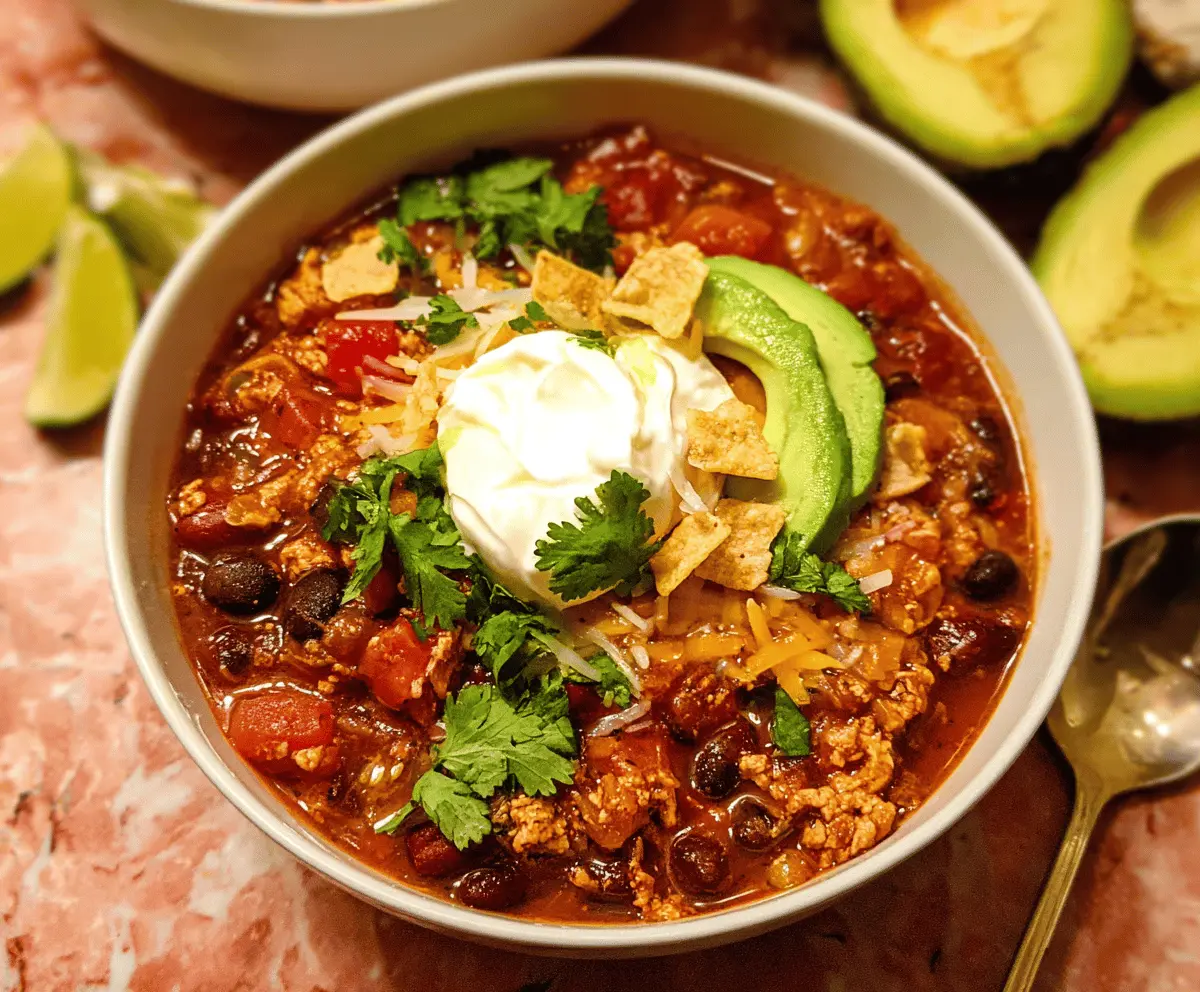 This chili is perfect for cozy nights. I love to top it with cheese, sour cream, and some crispy tortilla chips. It’s like a warm hug in a bowl! 🌶️❤️
