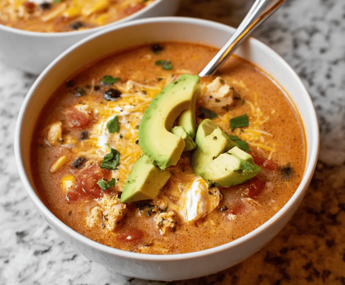 Ladle the soup into bowls. Each bowl can be garnished with a dollop of sour cream, a few slices of avocado, extra chopped cilantro, and a sprinkle of tortilla strips or crushed tortilla chips for that delightful crunch!