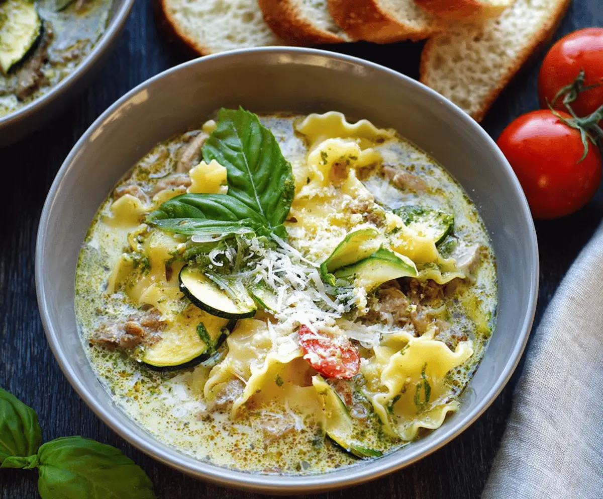 Serve your comforting Pesto Lasagna Soup warm, with a side of crusty bread for dipping. Enjoy every spoonful!
