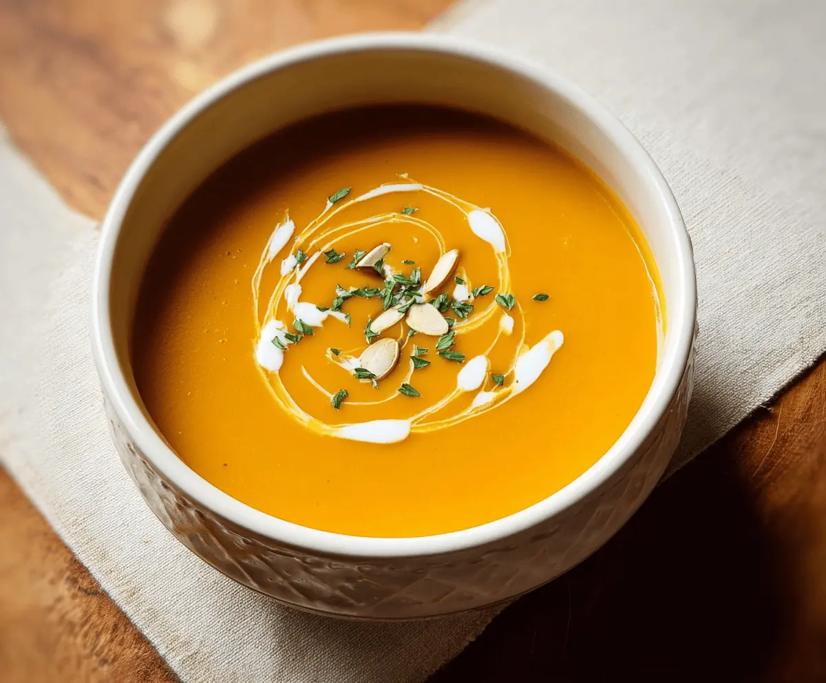 Heat the soup gently over low heat until warmed through. Then, serve hot in bowls, drizzling a swirl of cream or coconut milk on top. Garnish with fresh thyme leaves for that lovely flair. Don’t forget to enjoy it with some crusty bread slices for dipping!