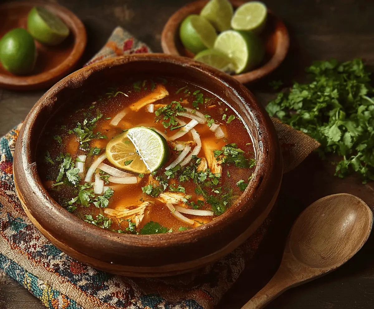Sopa de Lima is a bright and zesty soup that brings a taste of Mexico to your table. It features chicken, fresh lime juice, and crisp tortilla strips, making it a perfect comfort food!