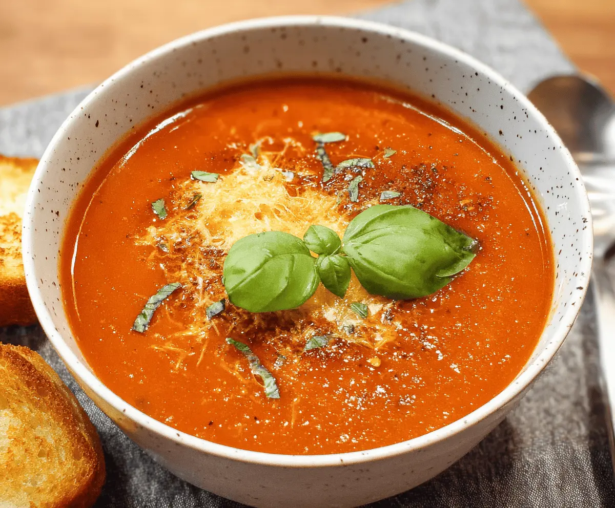 Your comforting and flavorful Tomato Basil Soup is ready to enjoy! Perfect for a cozy evening!