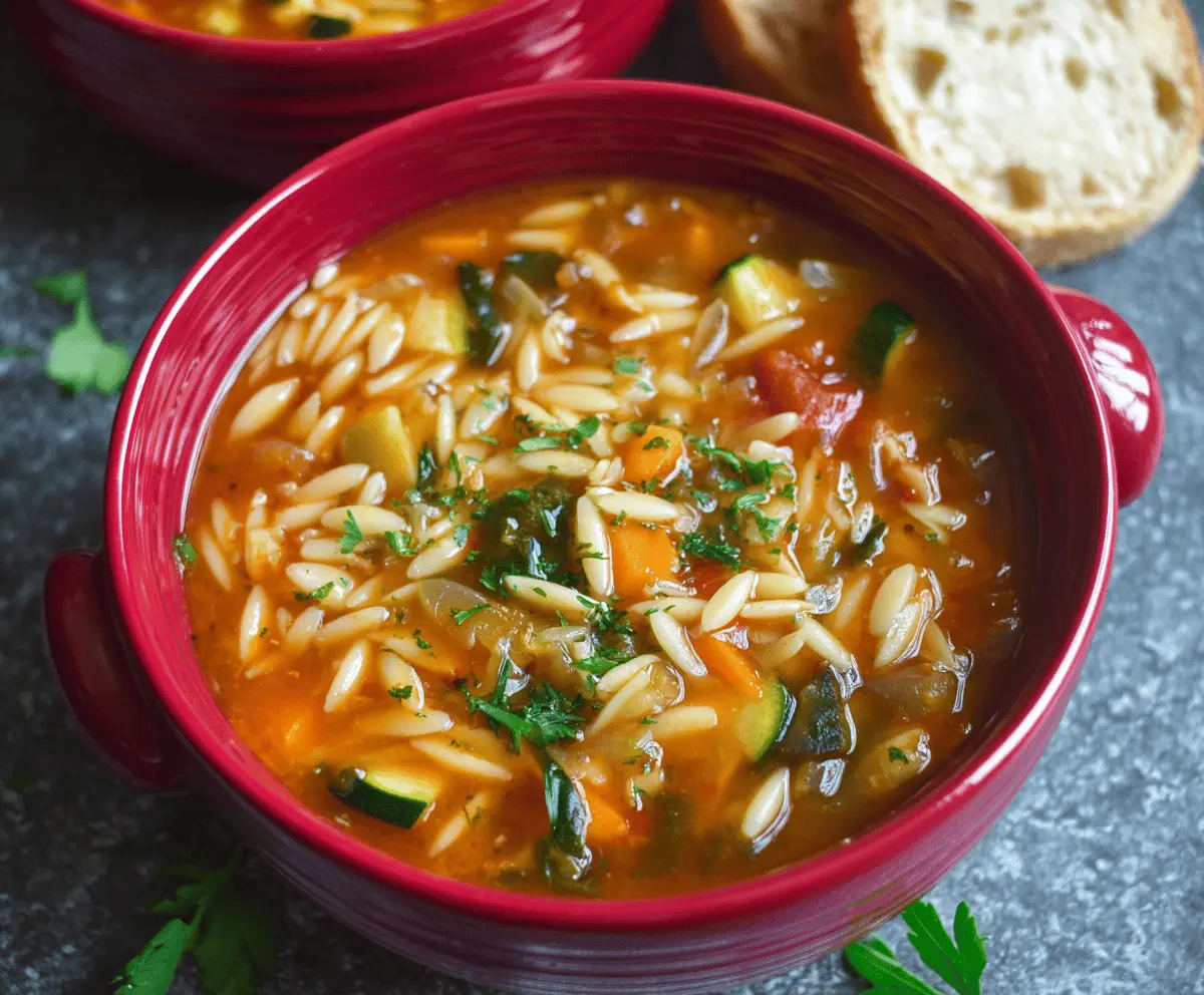 This hearty, vibrant soup combines tender orzo pasta with an array of vegetables in a flavorful broth, making a nourishing and delicious meal. Enjoy every spoonful! 🍲